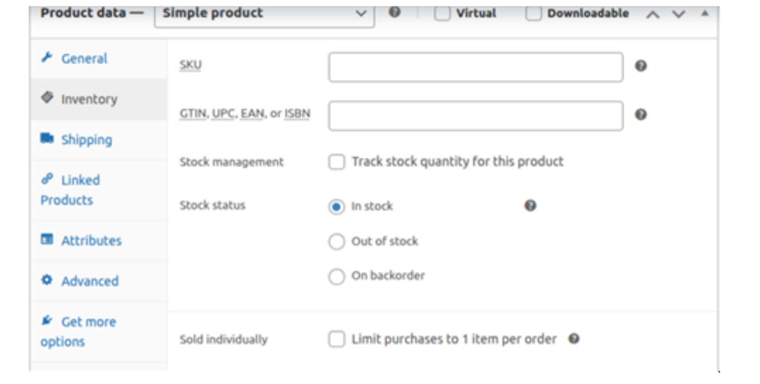 Stock Status: Select between “In Stock,” “Out of Stock,” or “On Backorder.”