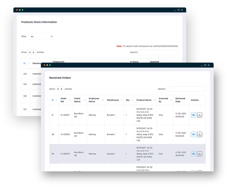 The first one is used to add products to a list that tells employees a list about their orders. Second, add stock-flow which says to add products to the main warehouse, and the third one is used to scan products and change order status. Application is connected to backend users and databases to updates the data. This application is based on single language only as English.